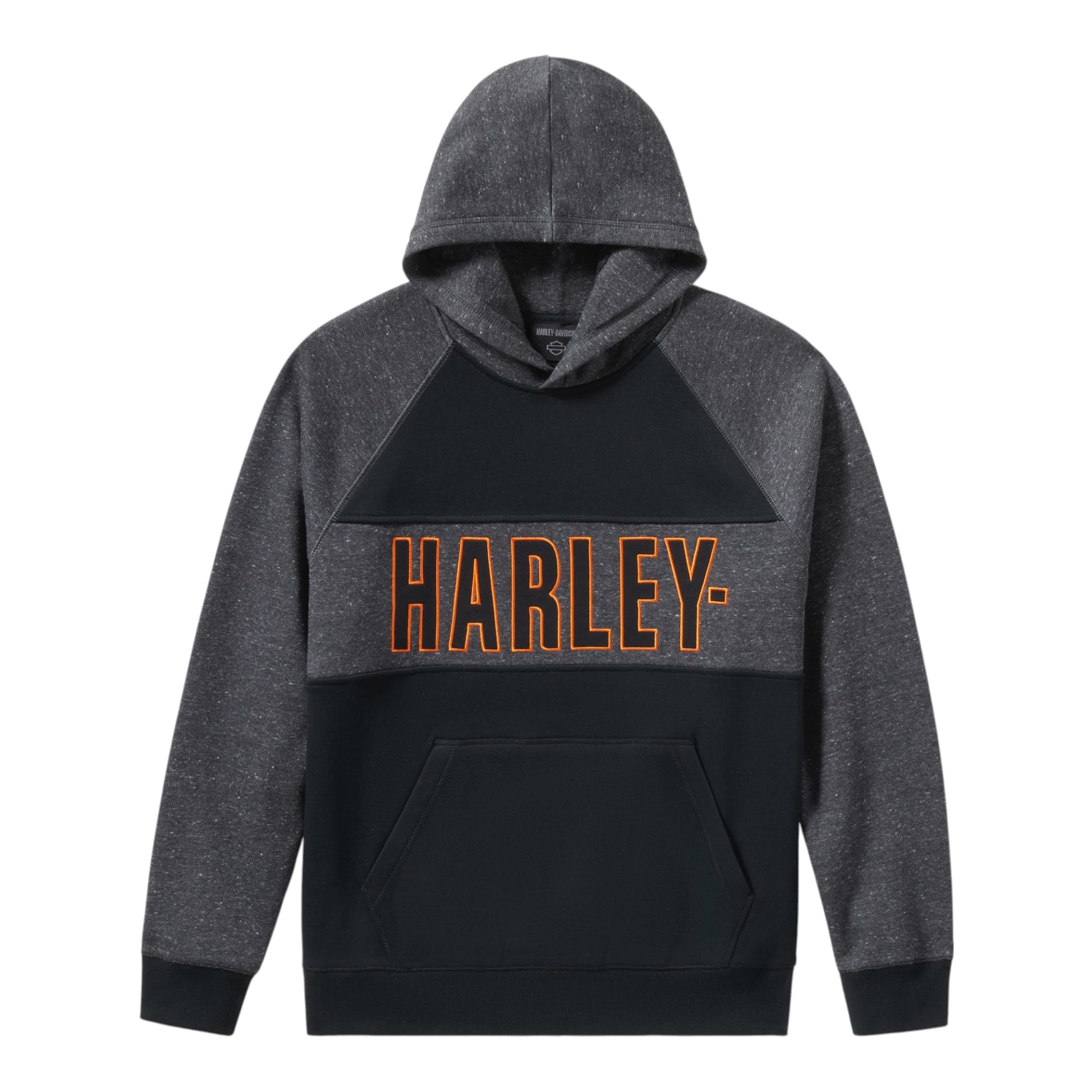 BAR FONT COLORBLOCK PULLOVER HOODIE - BLACK HEATHER