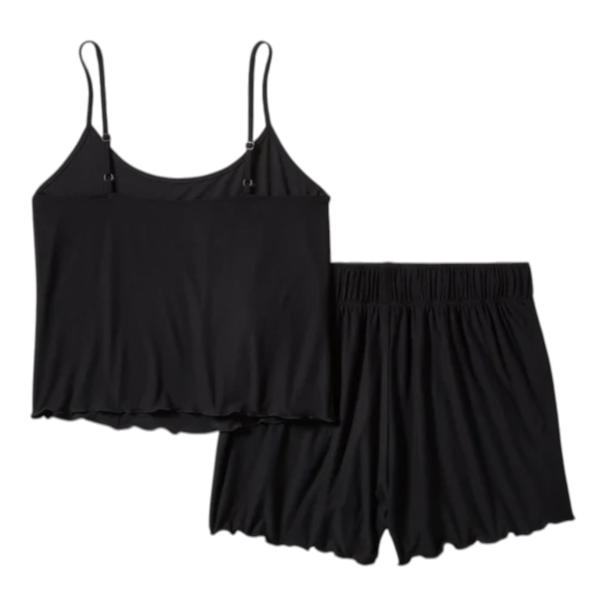 LETTUCE TRIM PAJAMA SHORT SET - BLACK