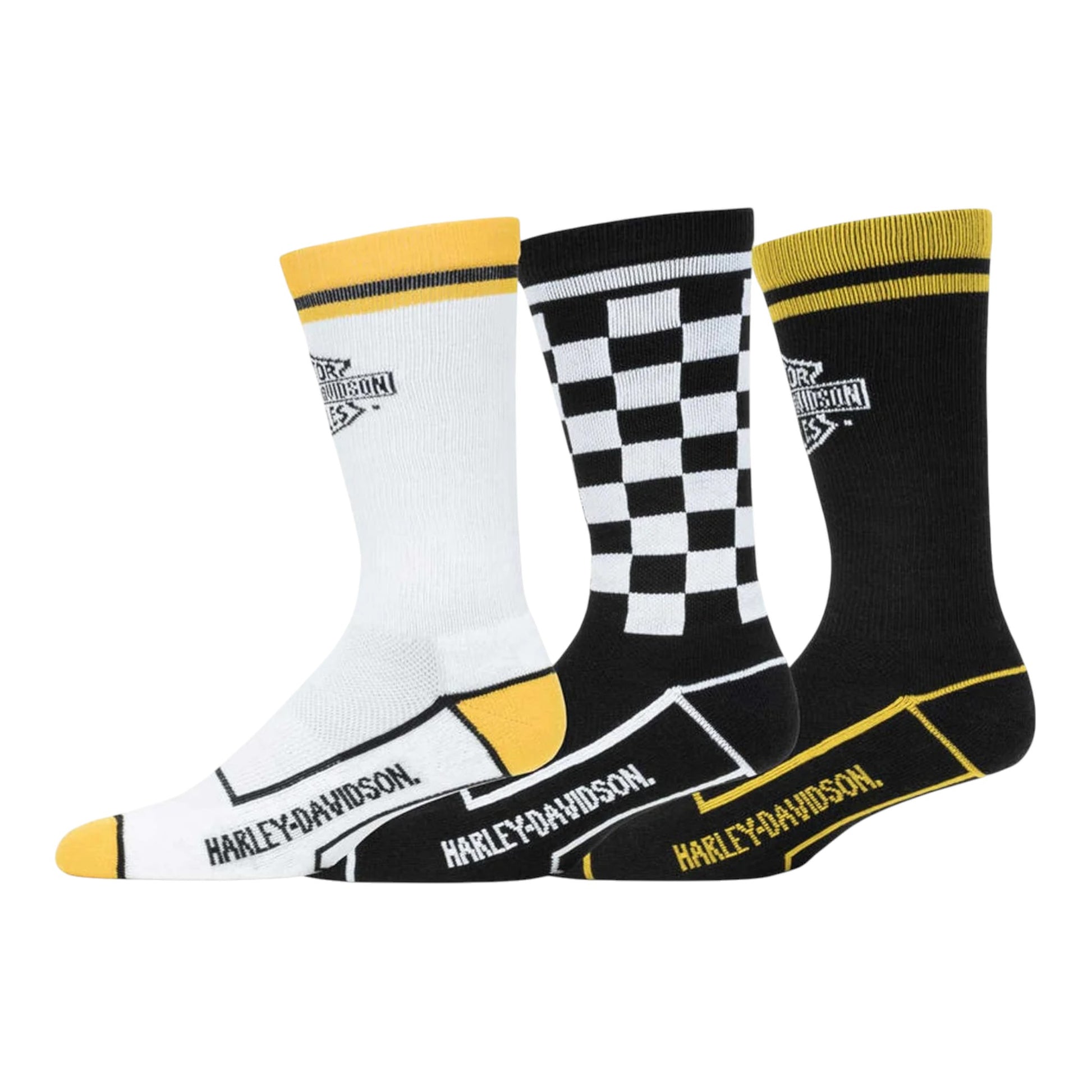 MEN'S 3PACK RACE N RALLY VENTED WICKING RIDING SOCKS - BLACK/YELLOW/WHITE