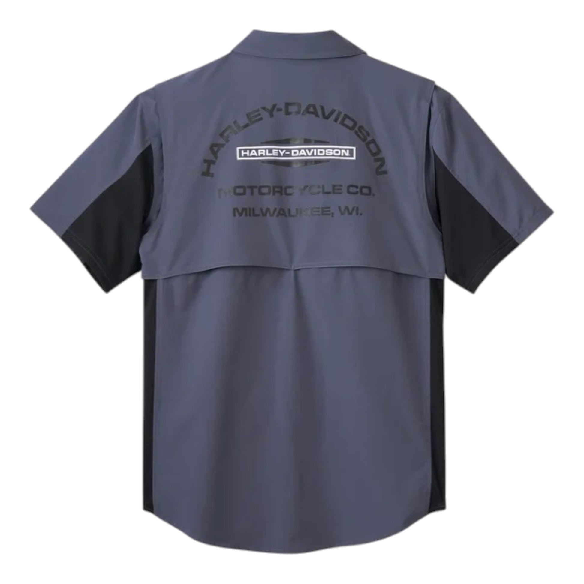 MEN'S H-D TECH MLWAUKEE SHORT SLEEVE SHIRT - COLORBLOCK BLACK/GREY BLUE