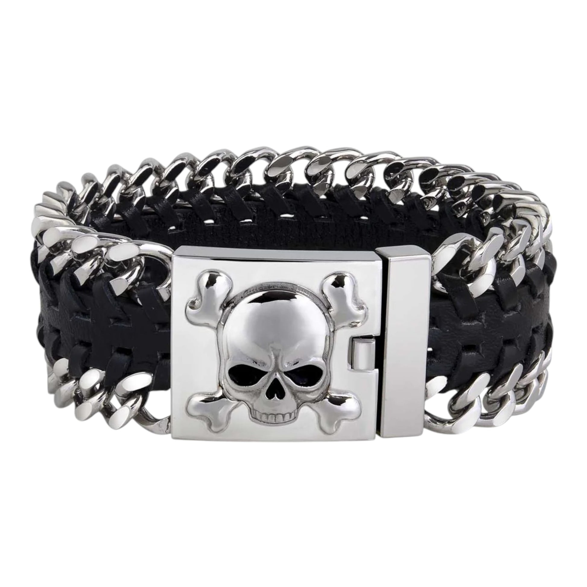 SKULL & BONES LEATHER CHAIN BRACELET